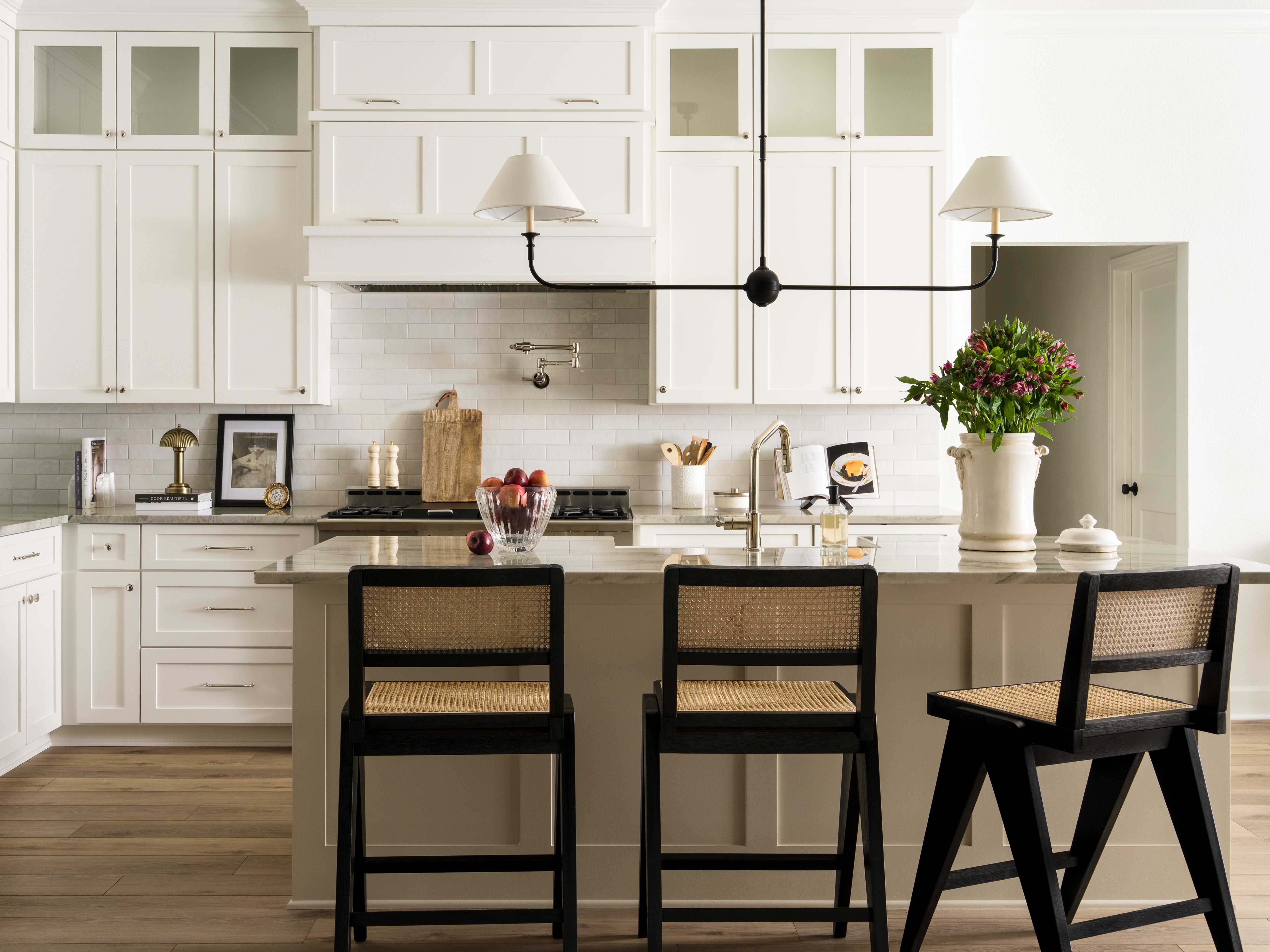 One of my favorite elements was adding in a few vintage pieces to add some personality to the home and to add a little charm. Quartzite, soapstone, and Carrara marble countertops, create the classic aesthetic that adds to the cottage feel, while adding some modern art pieces, and clean lined furniture brought in the modern aspect.